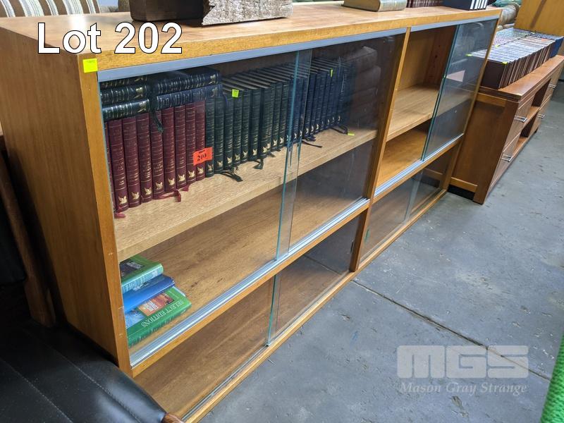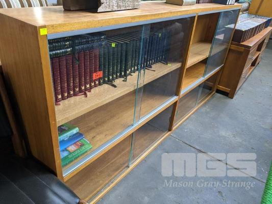 TIMBER FRAMED, GLASS FRONTED HALF HEIGHT BOOKCASE