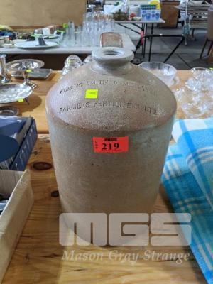 LARGE POTTERY DEMIJOHN "CUMING SMITH & MT LYELL" FARMERS FERTILISERS LTD