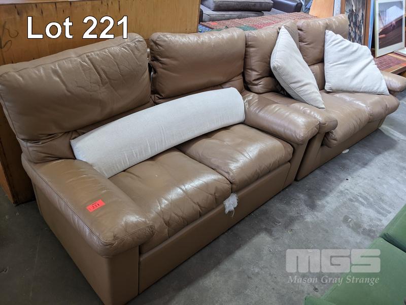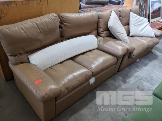 2 X BROWN LEATHER 2 SEATER SOFAS