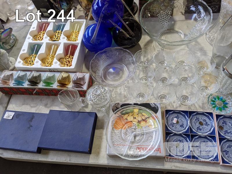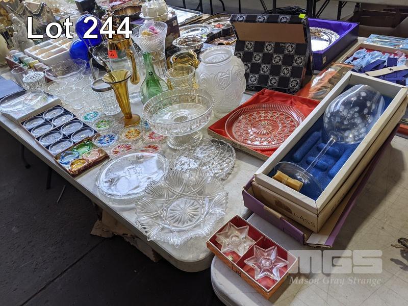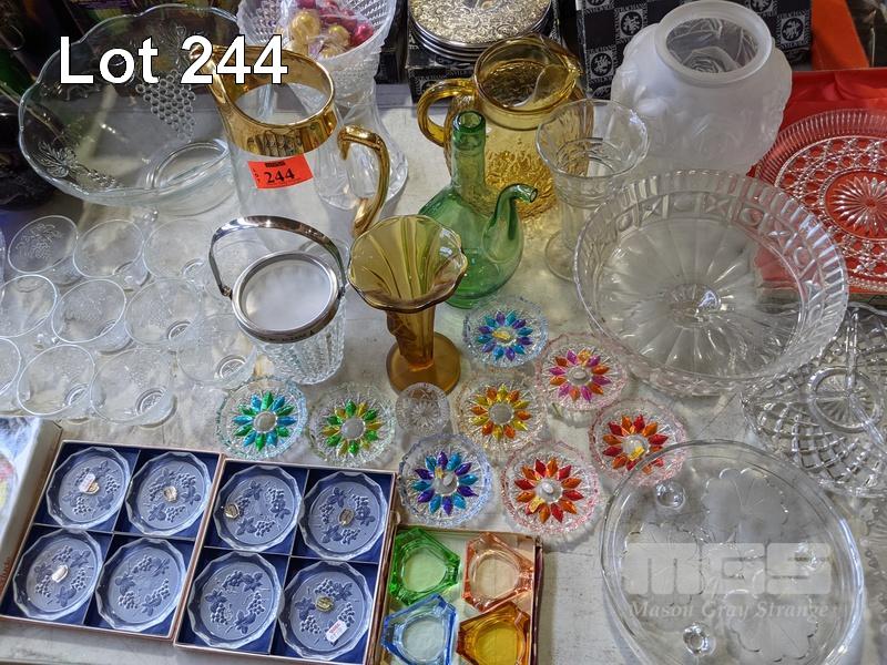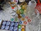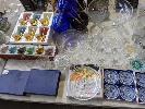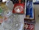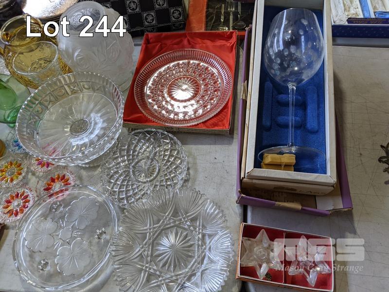 GLASS SERVINGWARE, PLATTERS, VASES, COASTERS ETC