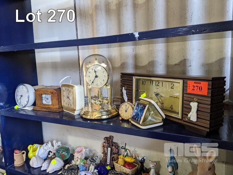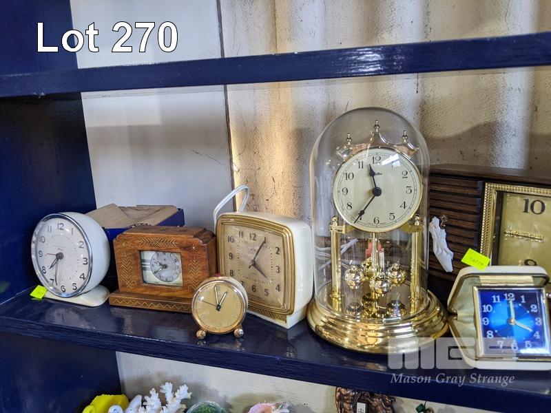ASSORTED CLOCKS, SEIKO TRAVEL CLOCK, DOME CLOCKS, MANTLE CLOCKS, ALARM CLOCKS ETC