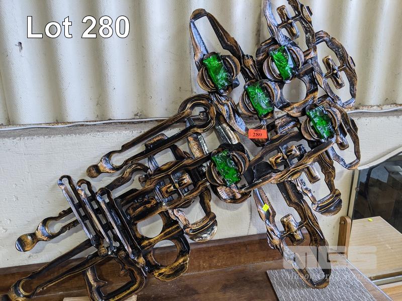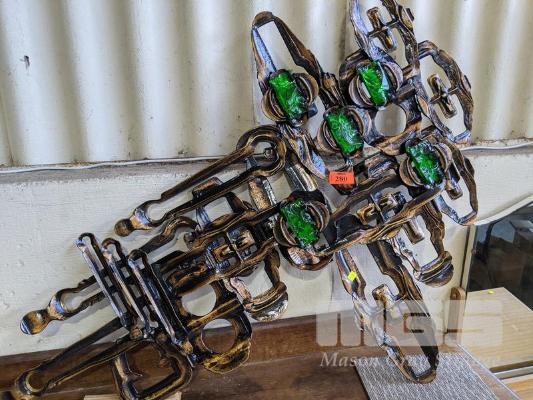 WROUGHT IRON WALL FEATURE WITH GREEN GLASS INSERTS