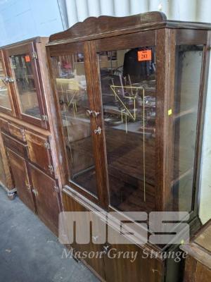 RUSTIC TIMBER GLASS FRONTED DISPLAY CABINET WITH 2 DOOR UNDERSTORAGE