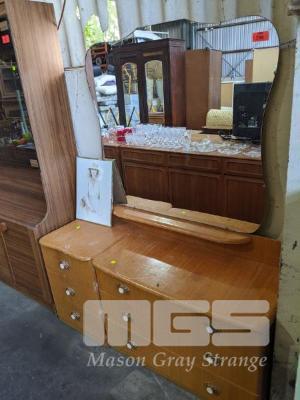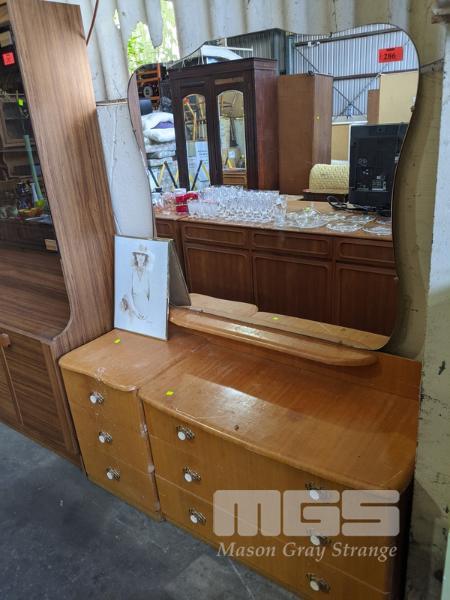 MIRROR BACKED DRESSER & MATCHING BEDSIDE CABINET