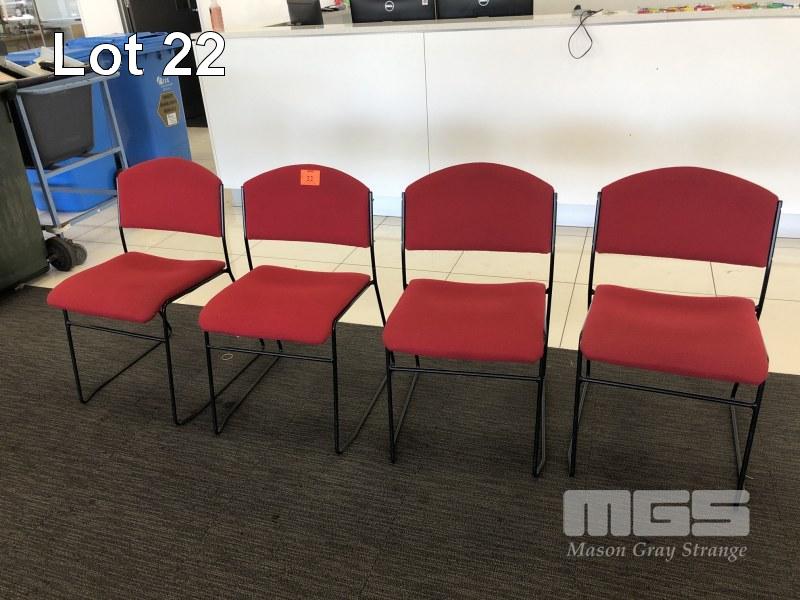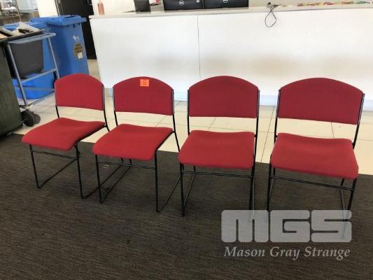 4 x HOLDEN RED FABRIC VISITORS CHAIRS, BLACK FRAME