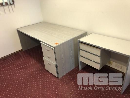 DESK, GREY WOODGRAIN LOOK, 1800 x 900mm & MOBILE, GREY STUDENT DESK & RED FABRIC OFFICE CHAIR