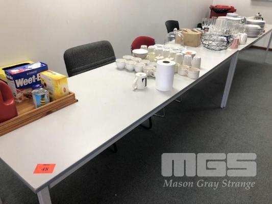 2 x CONFERENCE TABLES, 2400 x 750mm & 3 x ASSORTED OFFICE CHAIRS