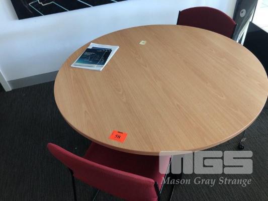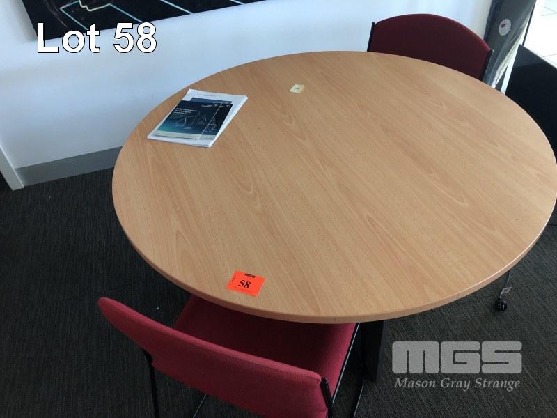 MEETING TABLE, BEECH/STORM LAMINATE & 2 x HOLDEN RED VISITORS CHAIRS