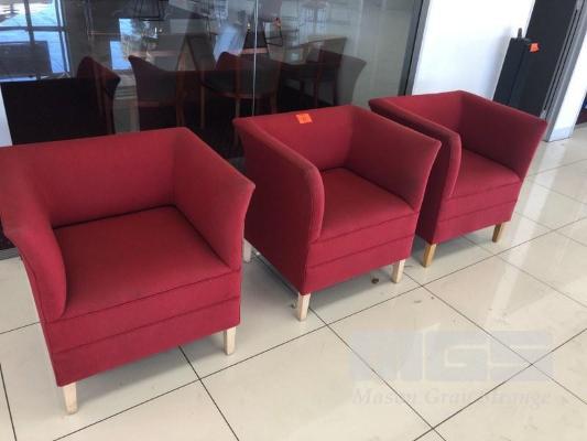 3 x HOLDEN RED SQUARE BACK TUB RECEPTION CHAIRS