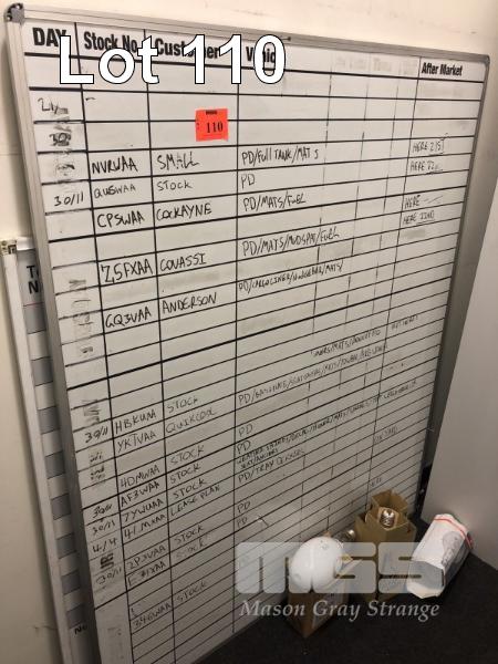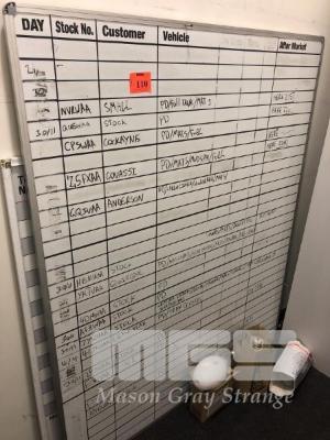 2 x LINED WHITEBOARDS, 1500 x 1200mm & 1200 x 1200mm, WITH GREY LAMINATE BOOKSHELF, 1800 x 900mm