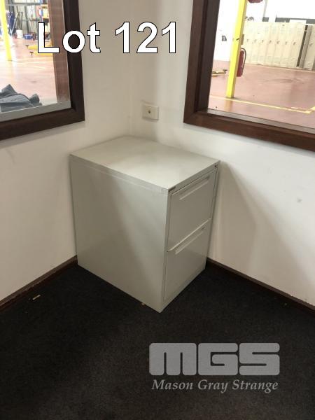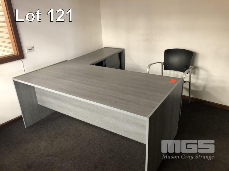 CONTENTS OF OFFICE INC DESK WITH RETURN, GREY LAMINATE, 2 DRAWER, 1800 x 900mm,