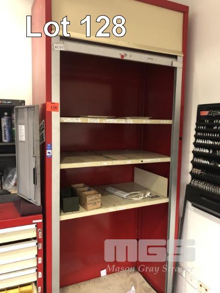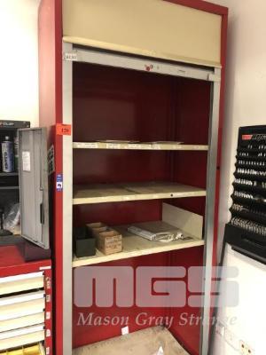 STOCK WORKSHOP STORAGE CABINET, MOSOON, BAC SYSTEMS, WITH SEE THROUGH ROLLER DOOR RED & CREAM FINISH, 1010 x 570 x 240mm (H)