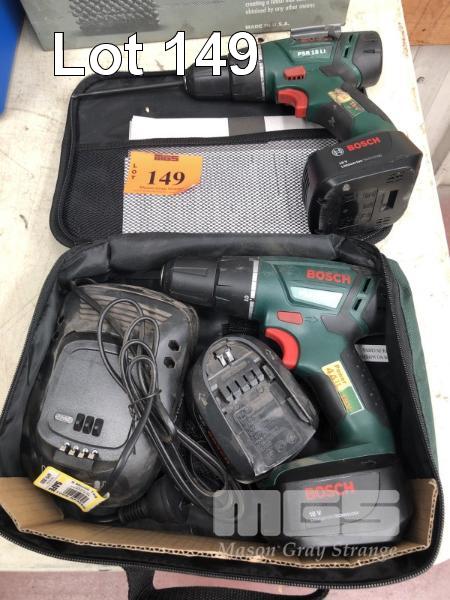 2 x BOSCH CORDLESS DRILLS, WITH CHARGER & CARRY CASE