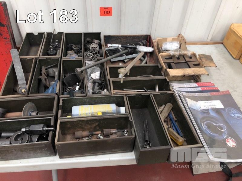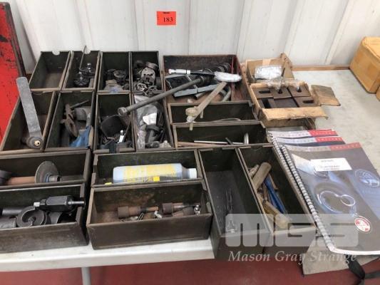 ASSORTED SPECIAL TOOLS, INC PULLERS, DIES, HOLDEN BOOK, ETC IN METAL PARTS TRAYS