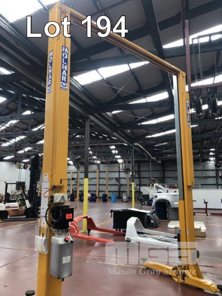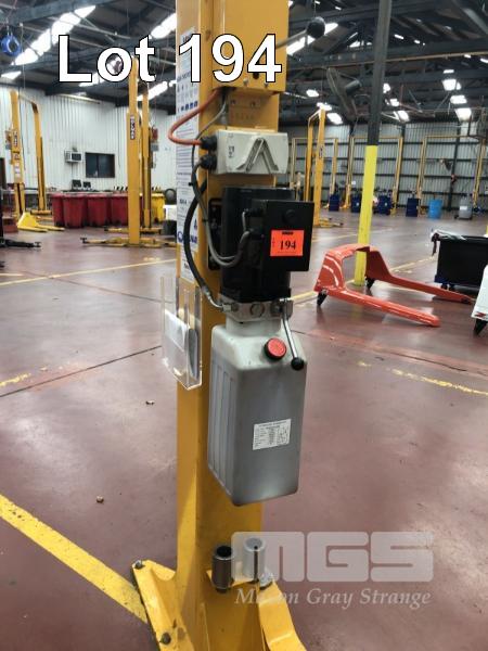 MOLNAR 2 POST HOIST, CLEAR FLOOR HOIST MOD: M245-A-SSHSCS SWL: 4,500kg S/NO: 11208 DOM: 11/2016 415V, 3 PHASE (PLEASE NOTE: BUYER TO ARANGE QUALIFIED ELECTRICIAN TO DISCONNECT AND TECHNICIAN TO DISASSEMBLE FOR REMOVAL)