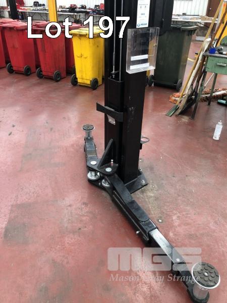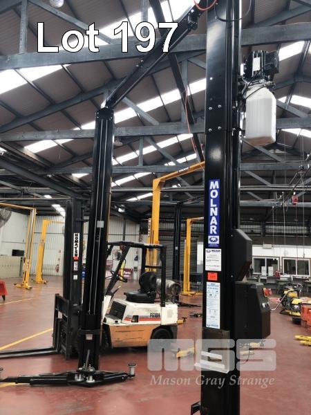 MOLNAR 2 POST HOIST, CLEAR FLOOR HOIST TYPE: SN245 SWL: 4,500kg S/NO: 2G4D6512 DOM: 2020 415V, 3 PHASE (PLEASE NOTE: BUYER TO ARANGE QUALIFIED ELECTRICIAN TO DISCONNECT AND TECHNICIAN TO DISASSEMBLE FOR REMOVAL)
