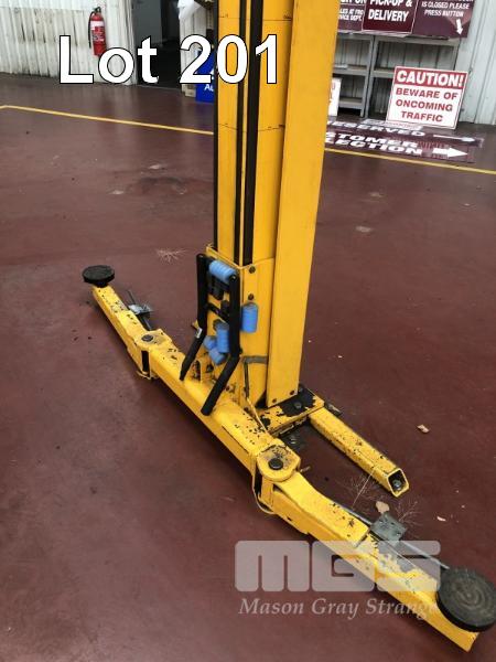 MOLNAR 2 POST HOIST, CLEAR FLOOR HOIST TYPE: MF-1705-93-OH-3T SWL: 3,000kg S/NO: 2431 415V, 3 PHASE (PLEASE NOTE: BUYER TO ARANGE QUALIFIED ELECTRICIAN TO DISCONNECT AND TECHNICIAN TO DISASSEMBLE FOR REMOVAL)