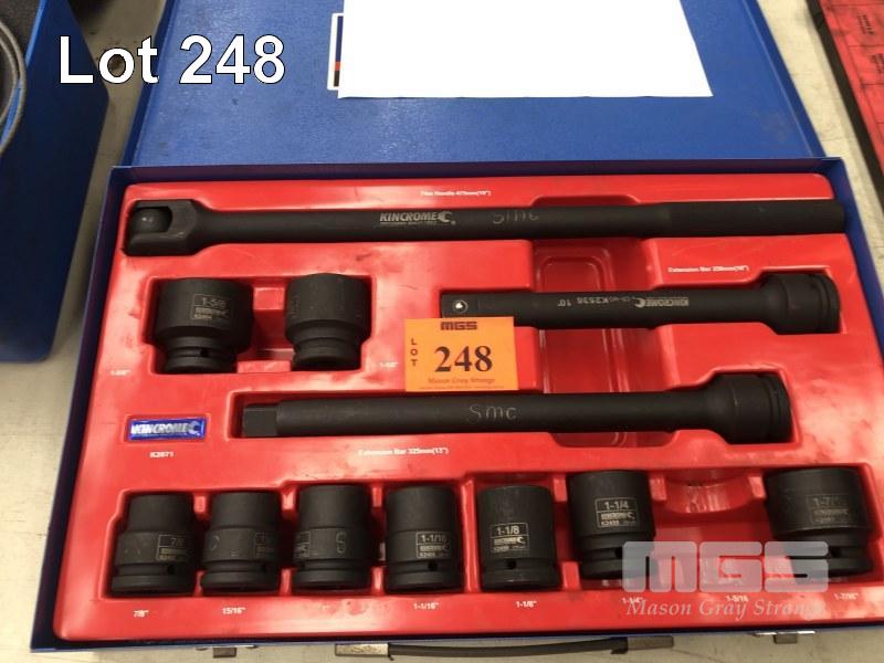KINCROME IMPACT SOCKET & EXTENSION SET, 7/8-1 5/8", 9 x SOCKETS & 2 x EXTENSIONS & 19" BAR, 3/4" DRIVE, (NOTE: 1 5/16" MISSING)