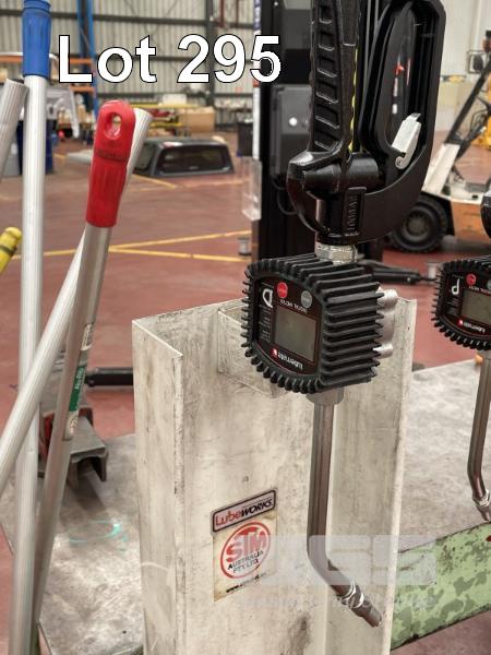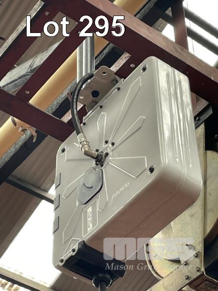 RAASM METAL OIL LINE RETRACTA REEL WITH ALEM LUBE LUBE MATE DIGITAL METERED OIL HAND PIECE, LUBE WORKS STAND & TOOL TROLLEY