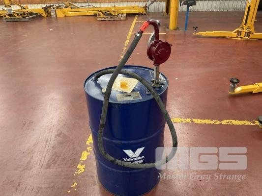 ALEM LUBE 501A GLADIATOR ROTARY DRUM PUMP & 205 LITRE DRUM PART FULL OF VALVOLINE SAE70 GEAR OIL