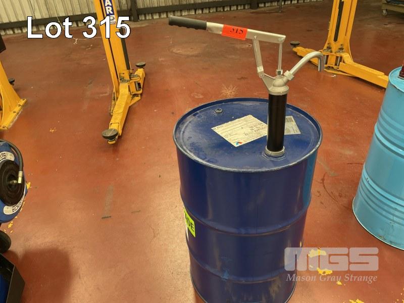 ALEMLUBE LEVER ACTION DRUM PUMP & 205 LITRE DRUM, PART FULL SYNPOWER OW-300L