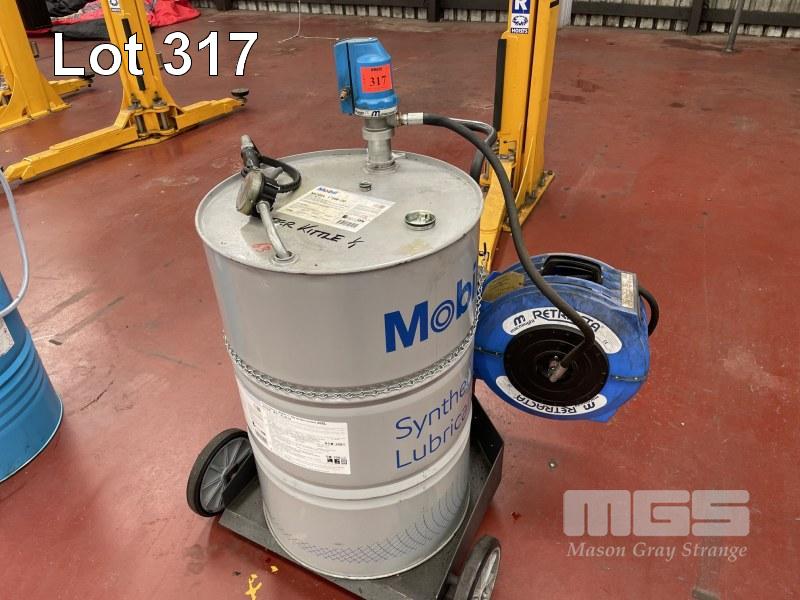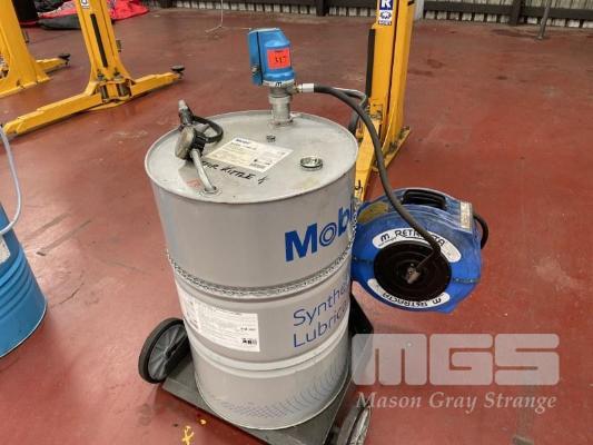 ALEMLUBE SERVICE TROLLEY INC ALEMLUBE TROLLEY BASE, MCNAUGHT AIR OP PUMP, MCNAUGHT OIL REEL, RETRACTABLE, ALEMLUBE DIGITAL HAND PIECE & PART 205 LITRE DRUM XTF DEXTRON TRANS FLUID & PART 205 LITRE DRUM MOBIL 5W-30 SYNTHETIC ENGINE OIL