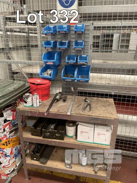 ASSORTED TYRE VALVES, WEIGHTS, LEVERS, PUNCTURE REPAIR STAND & KINCROME BIN RACK