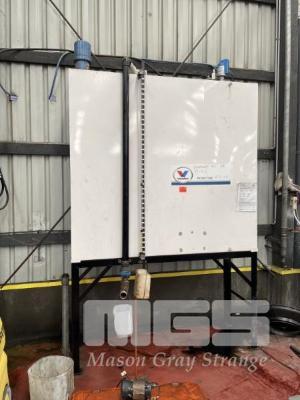 BULK OIL TANK, 1800 LITRE WITH INFEED AIR PUMP & MCNAUGHT AIR OP OUTFEED PUMP ON STAND WITH SIGHT GLASS