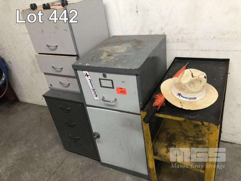MOBILE TROLLEY, 3 TIER, 2 x MOBILES, 3 DRAWER & STEEL CUPBOARD