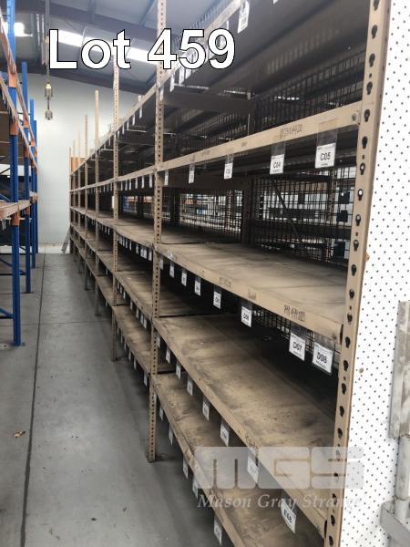 DOUBLE SIDED STEEL SHELVING UNIT, 8 BAYS, 5 TIER 3000 (H) x 1900 (L) x 1200mm (W) MESH DIVIDERS, 1 x BAY SEPARATE