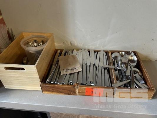 ASSORTED CUTLERY, 90 x KNIVES & 34 x SPOONS
