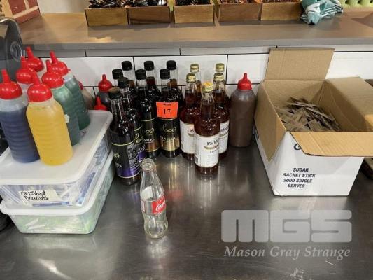 8 x TABOO SYRUPS, VANILLA CARAMEL & HAZELNUT & 5 x BICKFORDS LIME CORDIAL & 2 x TUBS & 1 x BOX SUGAR SACHETS