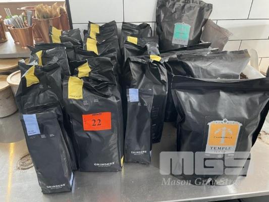 COFFEE & TEA 16 x 1kg GRINDER, MEDIUM ROAST ARABICA BEANS, 5 x 500gm BAGS TEA, PEPPERMINT, EARL GREY & CHAMOMILE