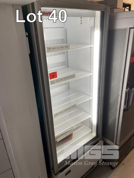 SINGLE DOOR UPRIGHT DISPLAY FRIDGE, SKOPE MOD: B550-2-C : V48SA S/NO: A110110601 DOM: 2011 240V, BOTTOM MOUNT COMPRESSOR