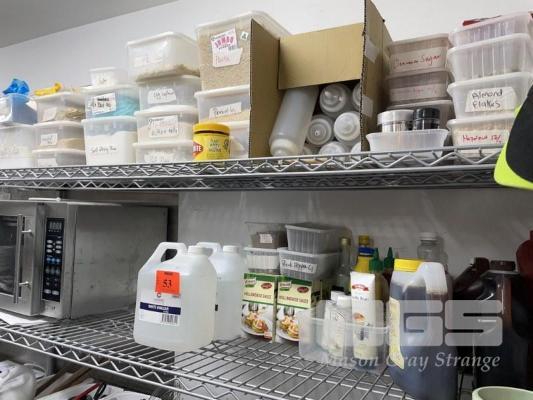 ASSORTED FOOD STUFFS, VINEGAR, HOLLANDAISE SAUCE, SQUEEZE BOTTLES, ETC