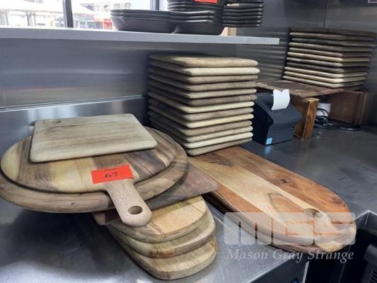 32 x ASSORTED WOODEN PLATTERS/SERVING BOARDS