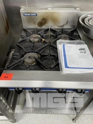 STOVE, 4 BURNER, BLUE SEAL MOD: G514DF-LS S/NO: 1710139 GAS FIRED WITH MANUAL