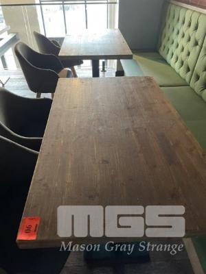 3 x RUSTIC DINING TABLES, 120 x 70cm, BLACK SINGLE PEDESTAL BASE