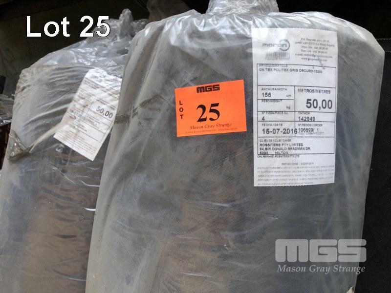 50m ON TEX POLITEX GRIS OPSCURO-13200, 1580mm (W) WITH PART ROLL APPROX 40m, 50m TECNOLITE 150GR BLACK, 1500mm (W)
