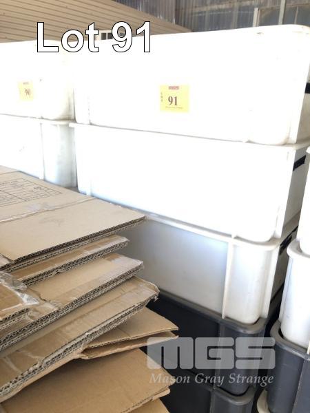 70 x PLASTIC STORAGE TUBS, GREY & WHITE, 550 x 350 x 200mm APPROX, STACKABLE