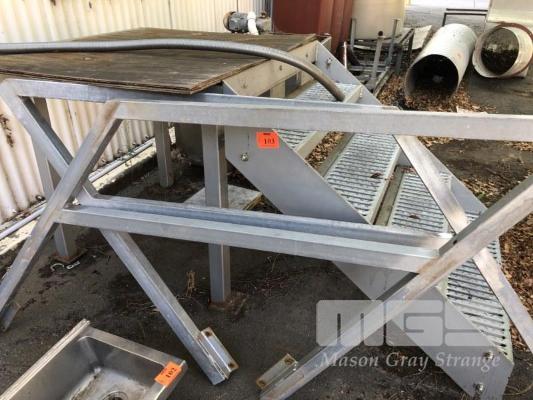 ELEVATED PLATFORM, 1000 x 1000mm WITH NON SLIP GALV TREADS, 1000mm (W) HEAVY DUTY STEEL FRAME AND HAND RAILS.