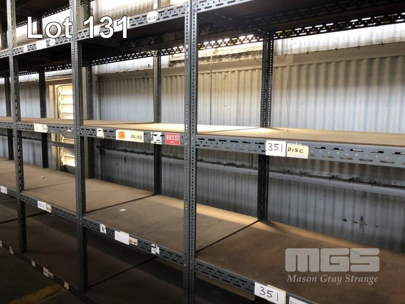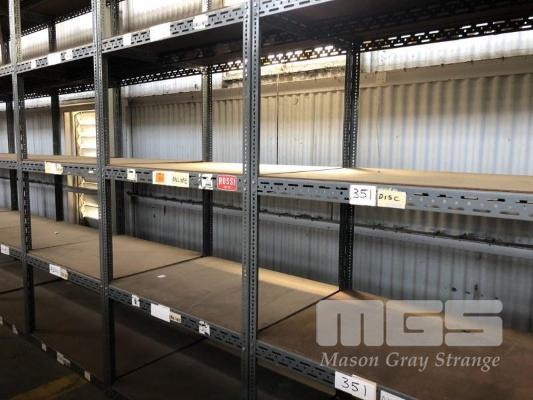 3 x SLOTTED ANGLE SHELF UNITS, 3200 (H) x 1230 (W) x 930mm (D) 5 TIER WITH MASONITE SHELVES HEAVY DUTY