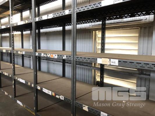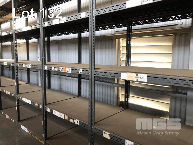 3 x SLOTTED ANGLE SHELF UNITS, 3200 (H) x 1230 (W) x 930mm (D) 5 TIER WITH MASONITE SHELVES HEAVY DUTY
