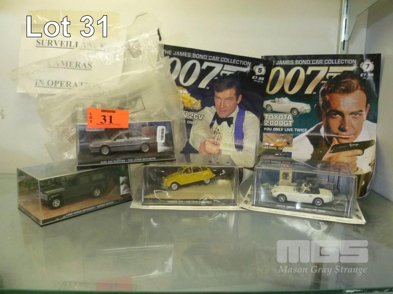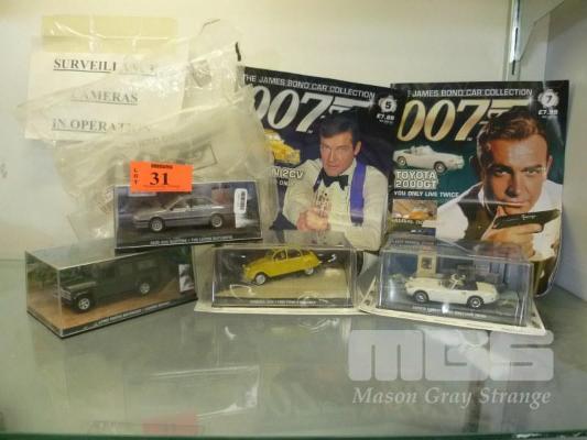 4 x JAMES BOND CARS, A COUPLE WITH ORIGINAL MAGAZINES