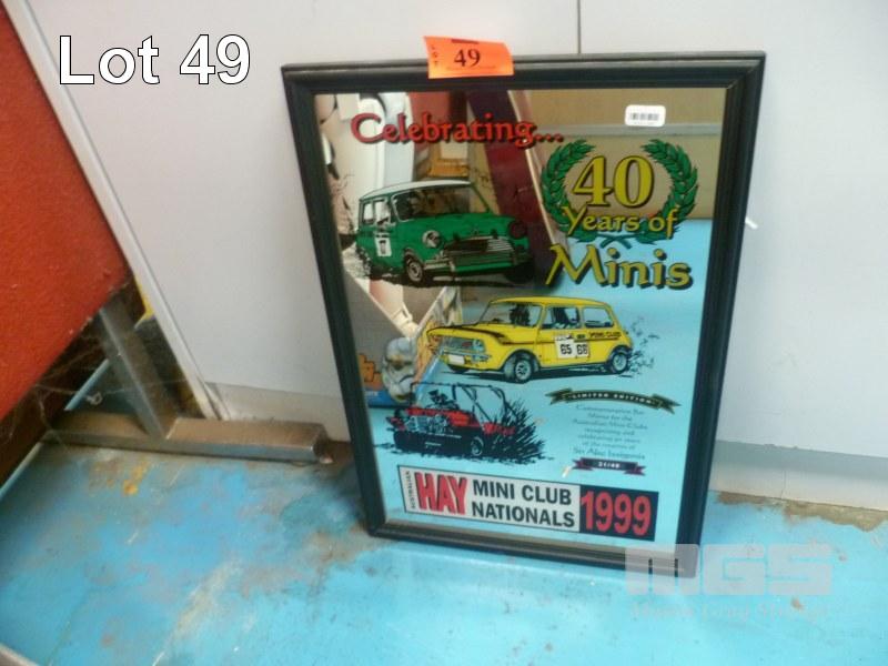 MINI MOTOR CAR MIRROR, 40 YEARS OF MINIS, 21/40, 48.5 x 33.5cm BAR MIRROR