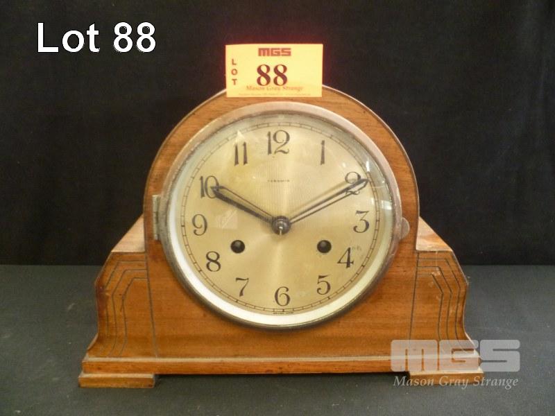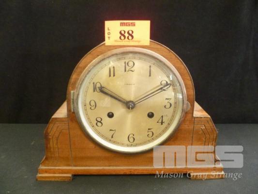 PYRAMID TIMBER MANTLE CLOCK, (ALL FAULTS, CHIMER DETACHED)