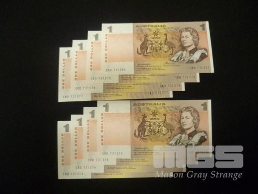 1976 8 x $1.00 GOTHIC SIDE THREAD CONSECUTIVE NOTES KNIGHTS WHEELER UNC