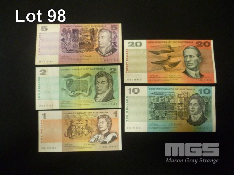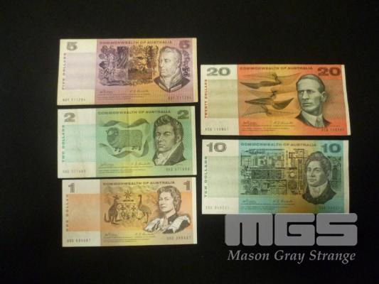 1968 5 x BANKNOTE SET $1 TO $20 NOTES MIXED GRADES PHILLIPS RANDALL