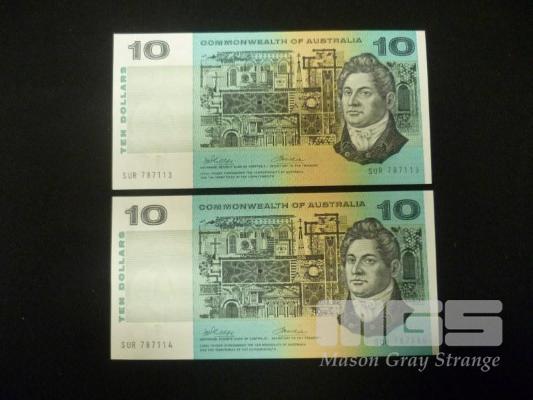 1972 2 x $10.00 NOTE PHILLIPS WHEELER CONSECUTIVE APPEAR UNC