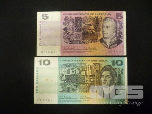 1967 $5 +$10 DOLLAR NOTES COOMBS RANDALL KEY DATES NOTES MIXED GRADES